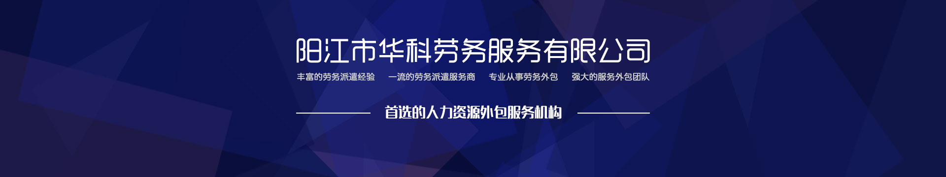 阳江市华科劳务服务有限公司是专业从事劳务外包、人事代理、劳务租赁、人力派遣及管理的综合性服务机构,是首批获得广东省人力资源厅、阳江市劳动和社会保障局颁发人力资源许可证的合法单位。“诚信务实、专业热情、满意第一、服务社群”的经营理念,在劳务派遣业务的基础上,更致力于合同制工人(临时工、实习生、假期工)方向发展,为用工企业及时输送合格的各类人才,合理调配人力资源的有序流动,帮助求职者寻求更加满意的就业渠道和岗位,切实维护求职者的合法权益。